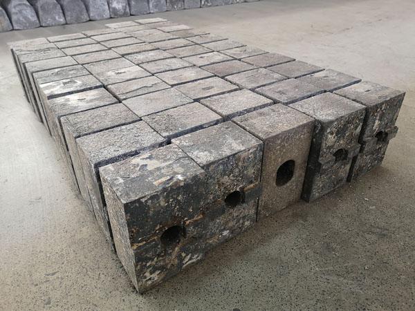 高铬方锤头使用寿命比锻造锤头或高锰钢锤头长久,是小型砂石生产线的较好选择,重量多在5-15公斤之间,被称为小锤头,该锤头广泛用于水泥厂石灰石破碎、熟料破碎,砖厂页岩、煤矸石、焦炭破碎,矿山制砂、矿石细碎等行业。